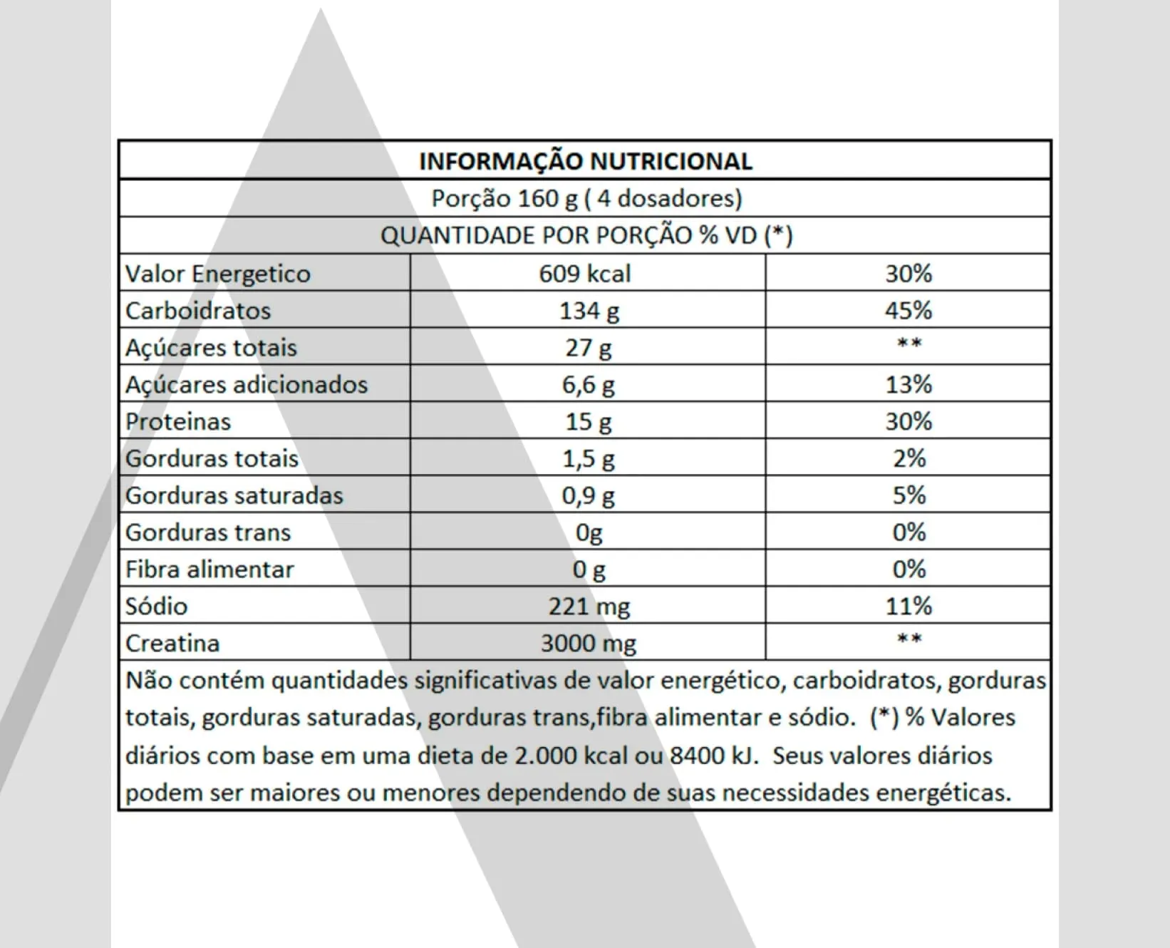 • Combinação poderosa de carboidratos, proteínas e creatina para ganho de energia e massa muscular.
