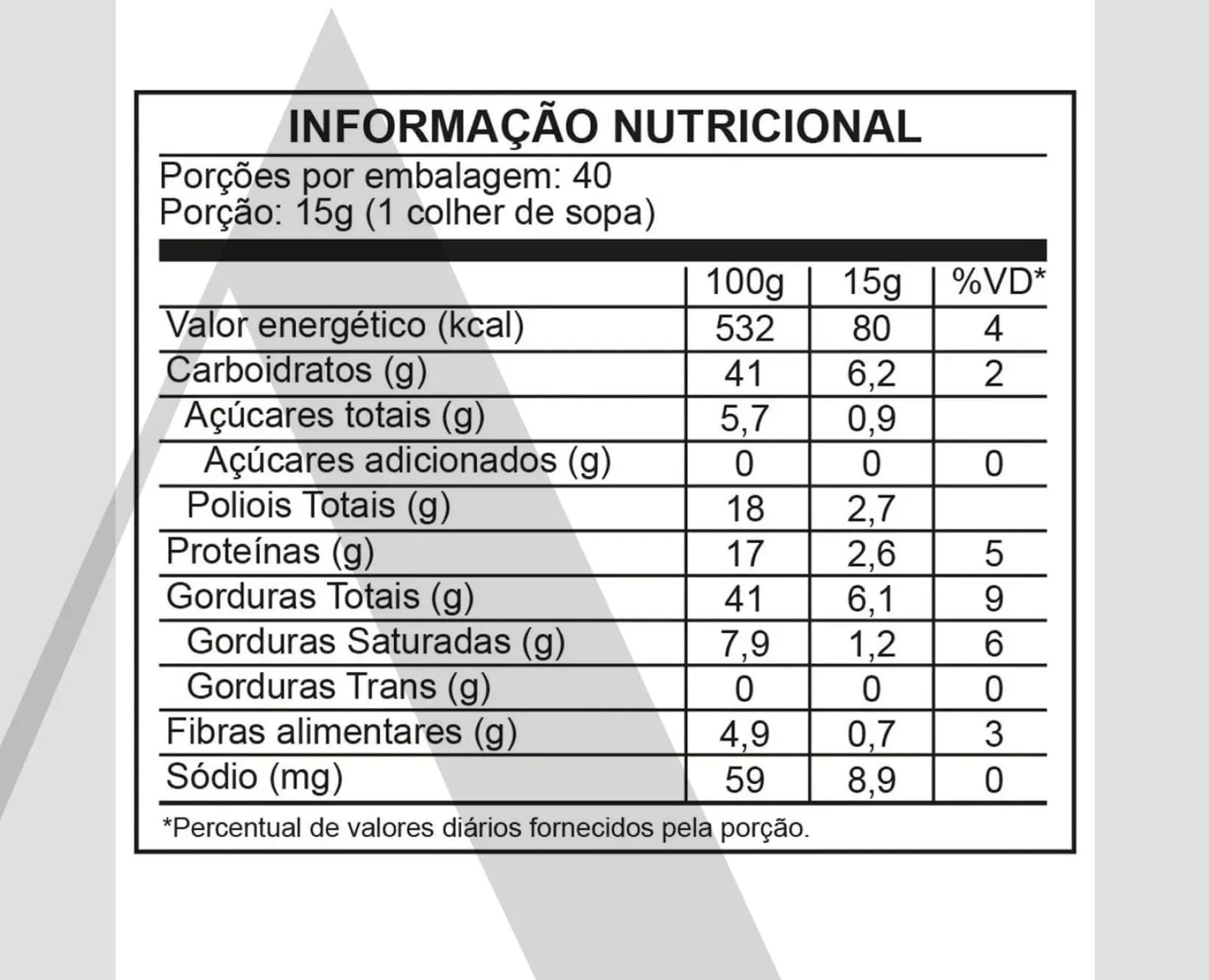Não indicada para pessoas com alergia a amendoim ou outros frutos secos. Para dietas específicas ou restritivas, consulte um profissional de saúde antes do consumo.