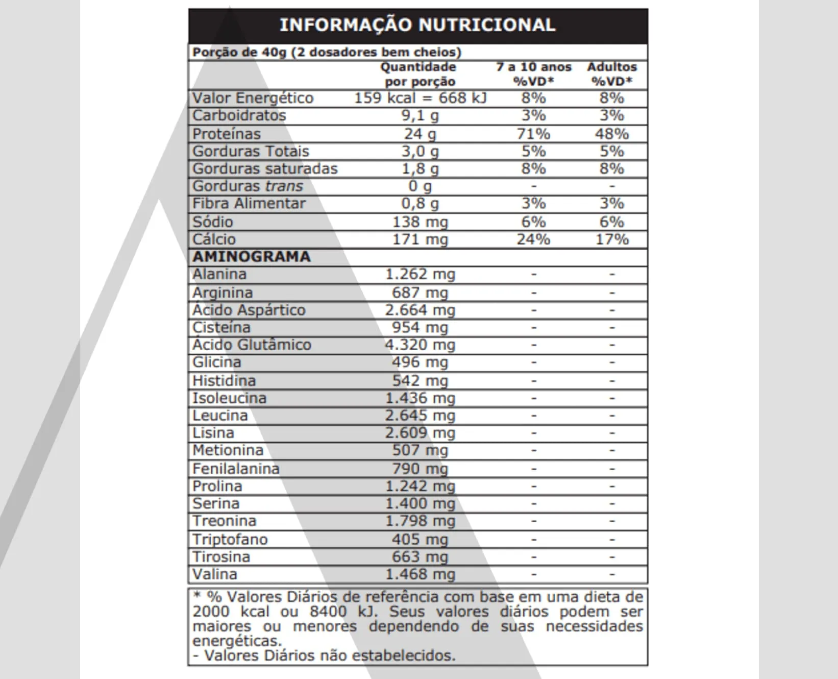 • Proteína concentrada de qualidade: Auxilia no ganho de massa muscular e na recuperação.