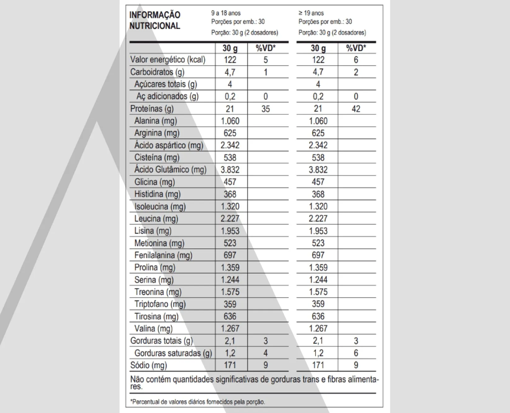 • Rico em aminoácidos essenciais: Essenciais para o desempenho físico e recuperação pós-treino.